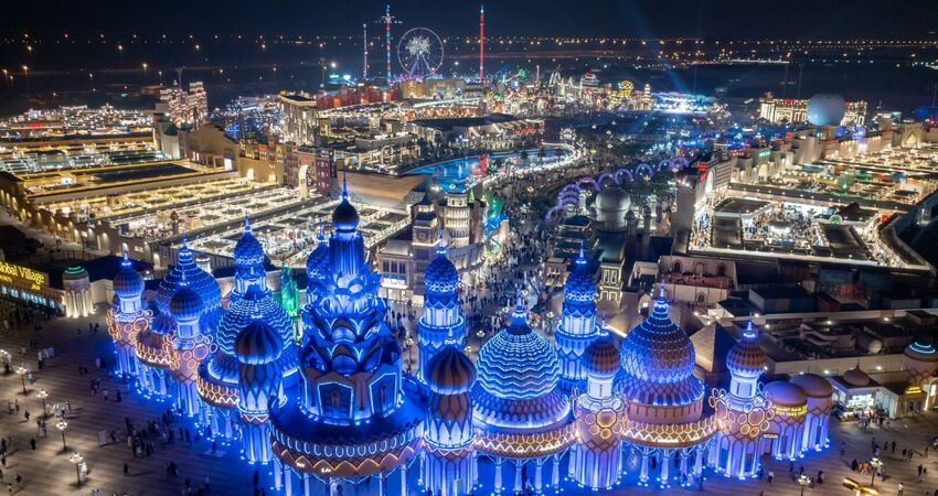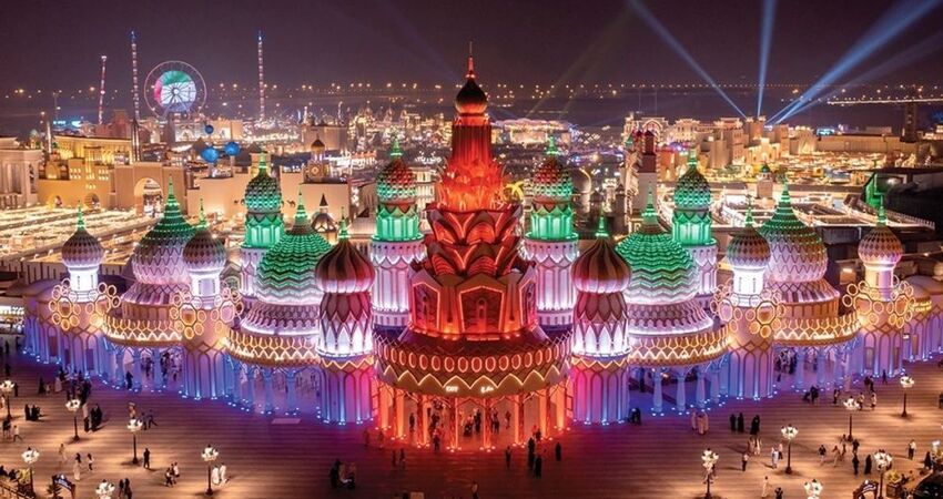 Akşam saatleri ise  Global Village'ın renkli ve eğlenceli atmosferine adım atıyoruz. 45'ten fazla ülkenin stantlarında el sanatlarını inceleyebilir, farklı dünya mutfak lezzetlerini tadabilir ve kültürlerini yakından tanıyabilirsiniz. Global Village turu fiyata dahil olup , giriş ücreti ekstra olarak ödenmektedir.