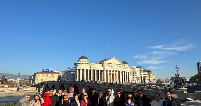 Üsküp’e varışımızla birlikte şehir turumuza başlıyoruz. Turumuzda; şehrin simgesi haline gelmiş Taş Köprü, Vardar Nehri boyunca uzanan manzaralar, hareketli Makedonya Meydanı ve meydandaki görkemli Büyük İskender Heykeli’ni görüyoruz. Ardından Osmanlı döneminden kalma Tarihî Türk Çarşısı’nı keşfediyor, İsa Bey Camii, Saat Kulesi ve Üsküp Kalesi gibi tarihi yapıları ziyaret ediyoruz.