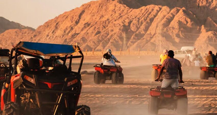 Sonrasında 1 saatlik ATV safari ile kızıl kum tepelerinde adrenalin dolu bir sürüşe çıkıyor, 5 dakikalık deve turu ile de Mısır kültürünün otantik ruhunu hissediyorsunuz.